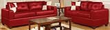 Bobkona Soft-Duo Bonded Leather Match 2-Piece Sofa Set, Red